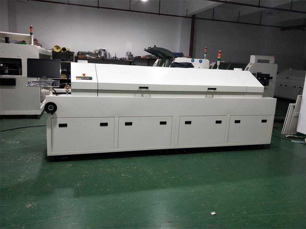 1. 加熱係統采用高效節能的瑞典鎳烙(lào)發(fā)熱管,輻射功率峰值波長4UM,配合(hé)曲麵反射罩,熱(rè)效率高,升溫度速度(dù)快,特(tè)製強製熱風循環(huán)結構係統,使(shǐ)PCB及元(yuán)器件受熱均勻,完全消除“陰影效應” ;
